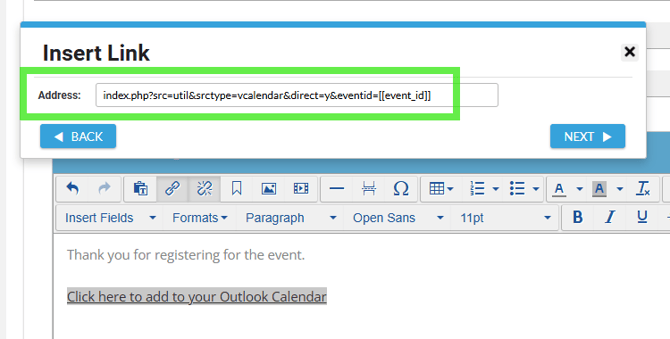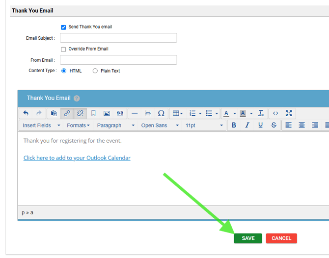 Note: You can also use this link in the Thank You Email content section of the Registration Form.