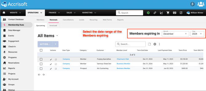 In this example we will invoice Members expiring in December 2024, which for this example is several months in the future.