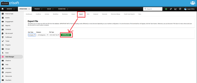 Exporting the Contact Database through the Data Manager Module > Export tab