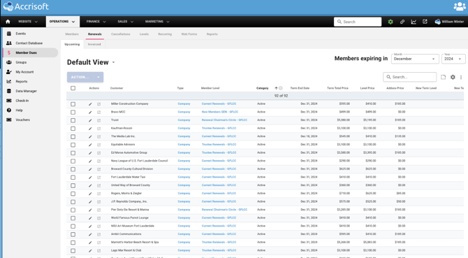 Begin by navigating to: Operations Application > Member Dues Module > Renewals Tab: