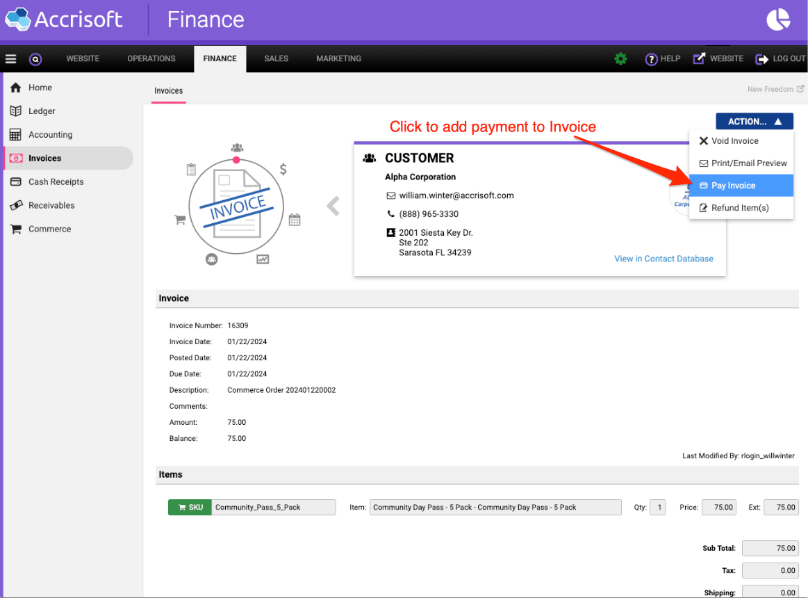 Click the 'Pay Invoice' option.