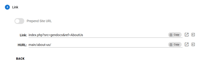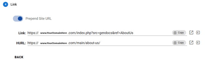 After selecting a page, the Link Wizard will display two types of URLs: